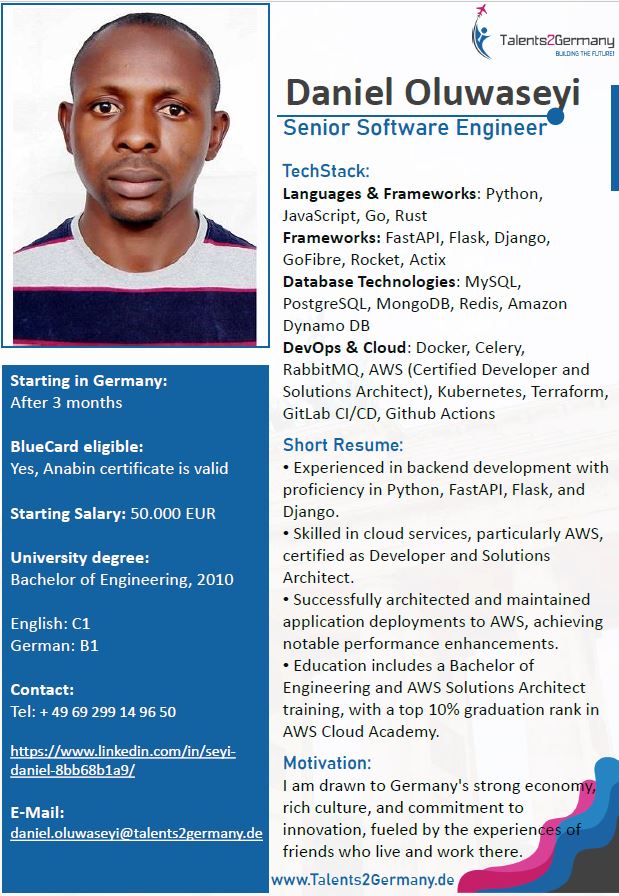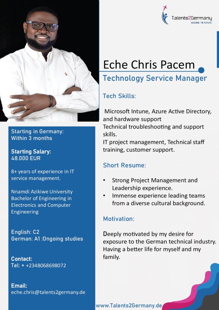 Global economies are not the same, accessibility and affordability differ. Our Patronship programme is designed to offer promising technology engineers who cannot afford our services, access to sponsorship from German Employers who truly desire their skill set.