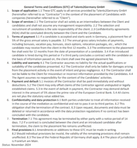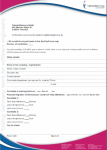 ❑ If the candidate is taken on and starts work on-site, Talents2Germany supports the migration process, for which the company pays 5% of the gross annual salary
